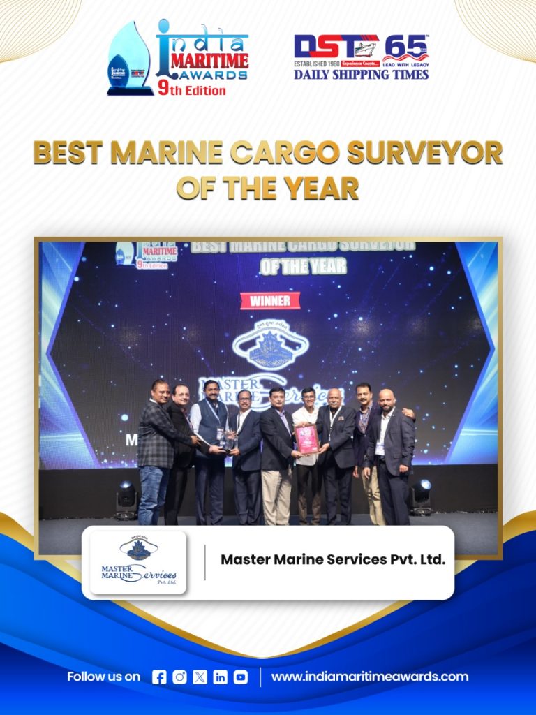 We are thrilled to announce that Master Marine Services P Ltd has once again proven its leadership and innovation in the maritime industry by bagging two prestigious awards at the 9th Edition of the India Maritime Awards 2025, held at The Sahara Star, Mumbai.